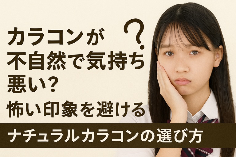 そんなふうに感じたことはありませんか?実は、高校生のあいだでもカラコンはすごく人気ですが、選び方を間違えると「宇宙人っぽい」「気持ち悪い」なんて言われてしまうこともあるんです。でも安心してください。いくつかのポイントを押さえれば、自然でナチュラルに見えて、むしろ「雰囲気がかわいくなった!」と褒められるはず。ここでは、高校生にぴったりの“怖い印象にならないカラコンの選び方”を紹介します。