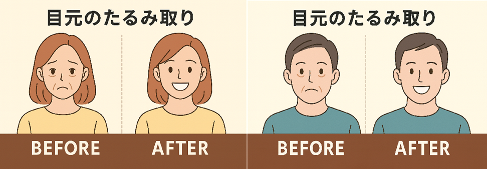 実は男性も、目元のたるみで見た目年齢が大きく変わるんです。女性から見ても、「目元がスッキリしている男性」は清潔感や信頼感があって、すごく印象がいいんですよ。