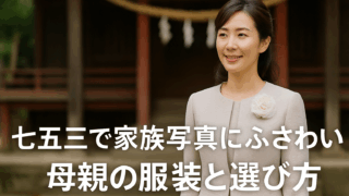 七五三の家族写真で母親が選ぶべき服装を徹底解説。30代・40代・50代別のおすすめスタイルや体型カバー術、フォーマル感と写真映えを両立するコーデを紹介します。